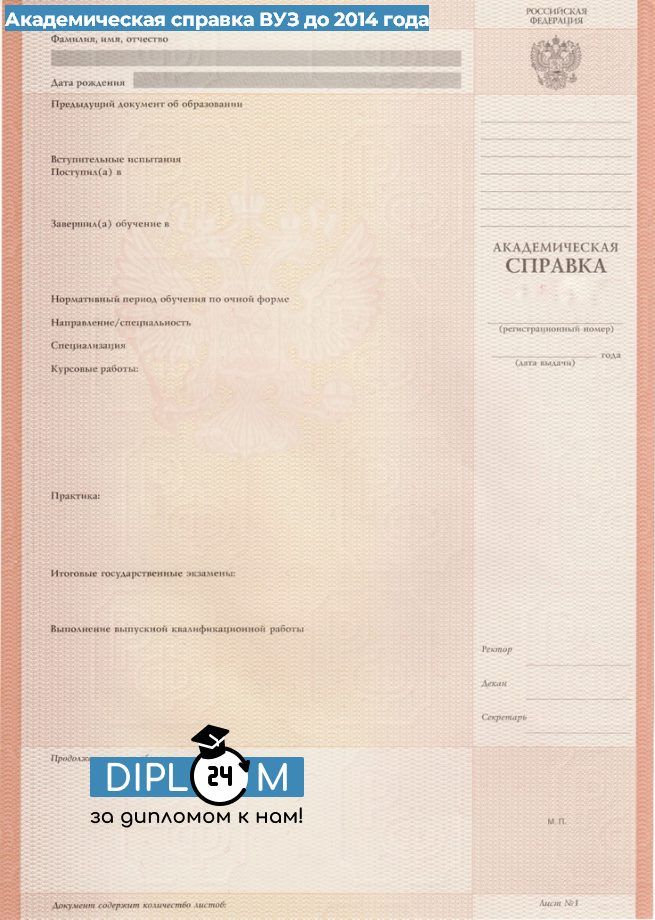 - Комплектация: заполненный бланк академической справки с печатями и подписями