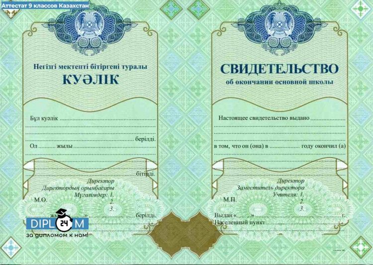 Аттестат 9 классов Казахстан 1998-2024 гг.