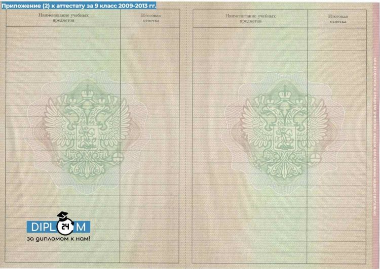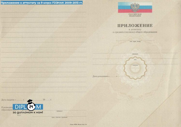 Аттестат школы 9 класс 2009-2013 гг.