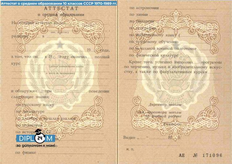 - Аттестат 10 классов СССР