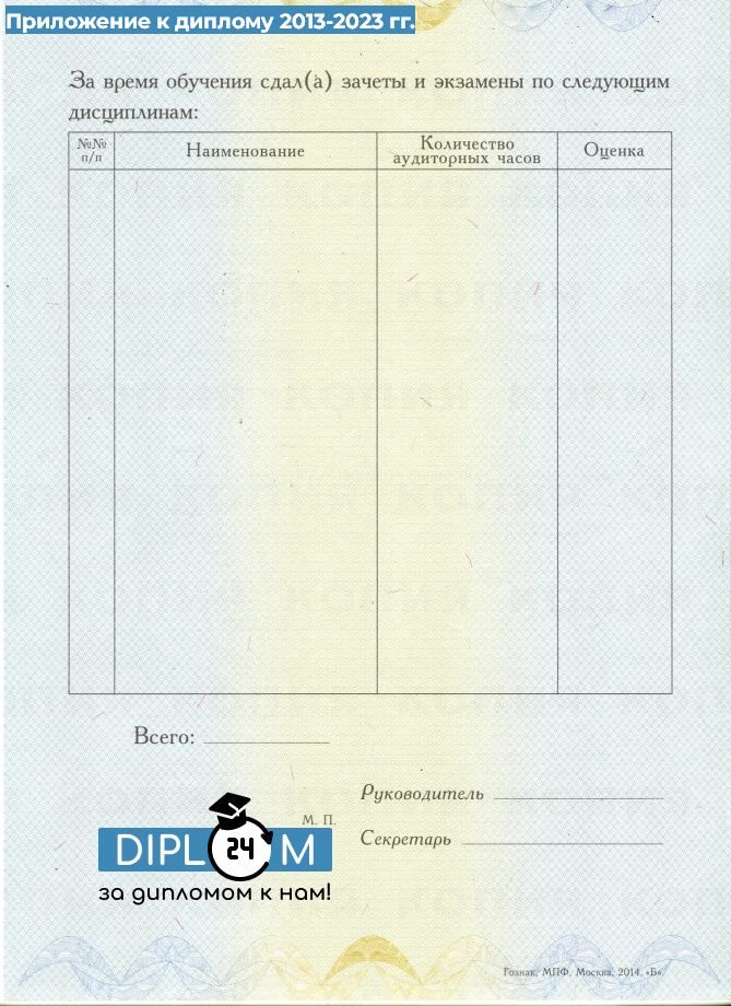 - Комплектация: Корочка, титульный бланк и приложение к диплому