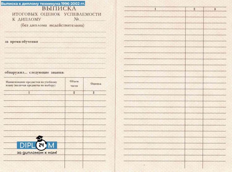 Диплом ПТУ (Училища) 1996-2002 гг.