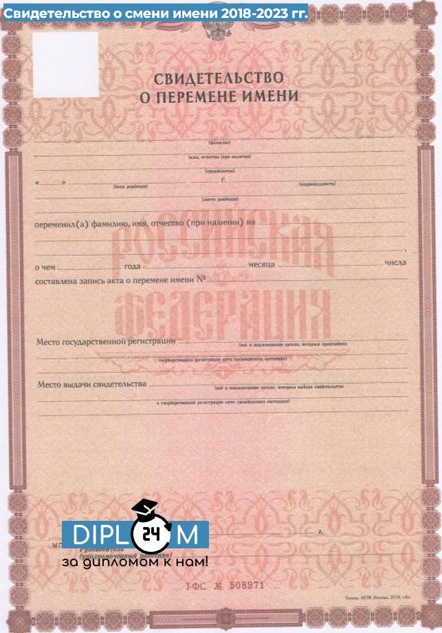 Свидетельство о перемени имени 2018-2024 гг.