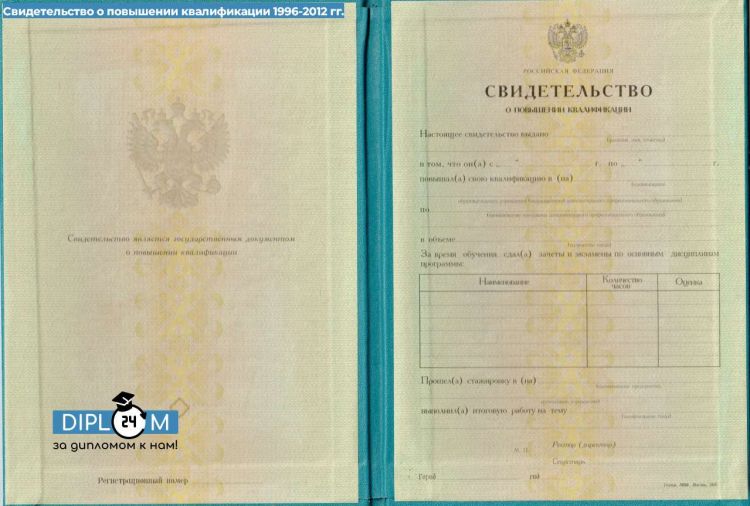 - Комплектация: Корочка, титульный бланк и приложение к свидетельство о повышении квалификации
